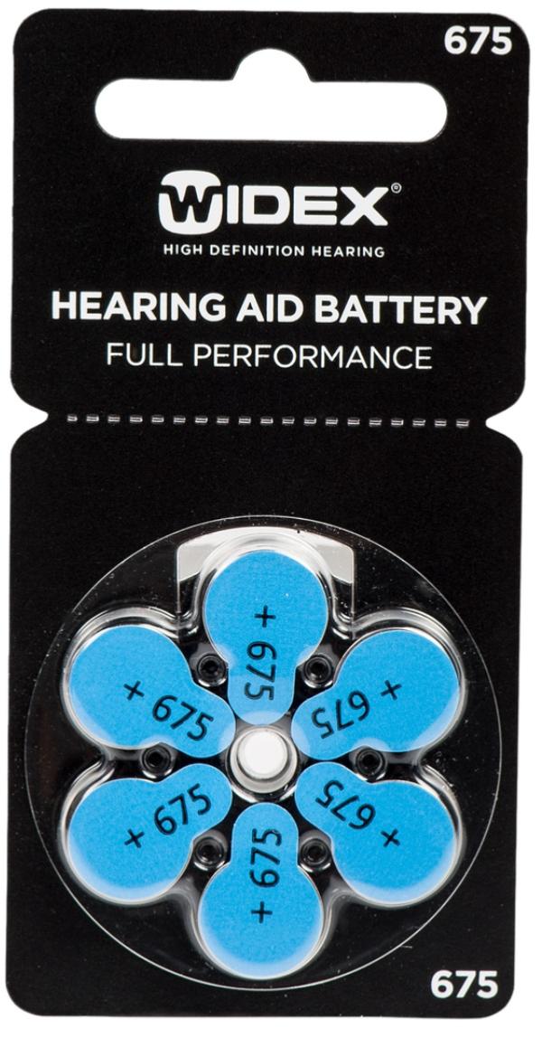 Plaquette de 6 auditives piles 675  Widex de couleur bleue pour les contours d'oreille surpuissants.